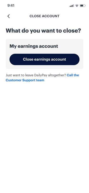 To close your DailyPay earnings account, DailyPay Card account, or both:
